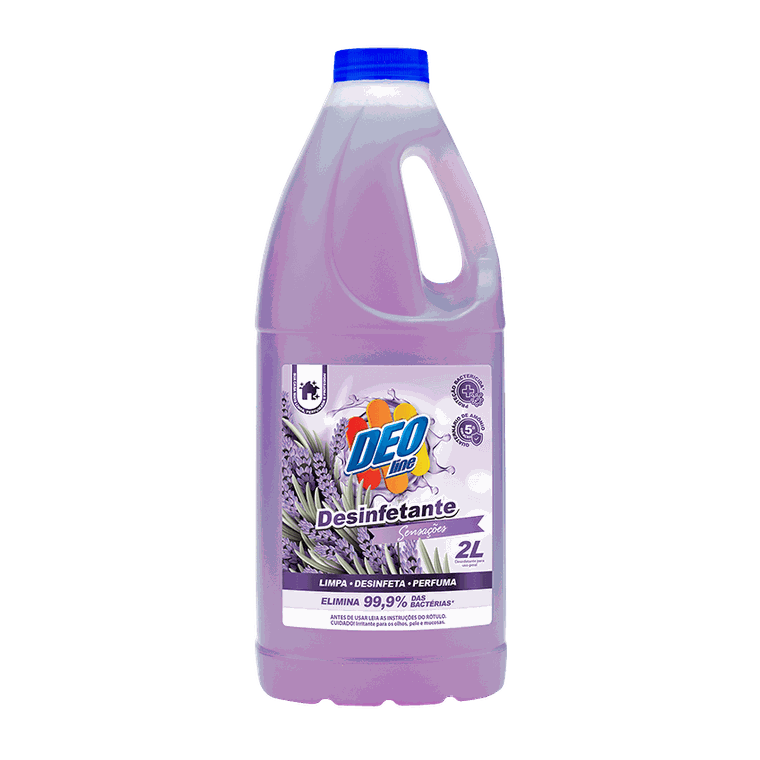 O Deoline Desinfetante – Sensações de uso geral é ideal para limpeza de pisos, paredes, corredores, banheiros, etc. Deixa o ambiente suavemente perfumado. Sua concentração facilita o transporte e a estocagem, podendo ser diluído conforme a necessidade. • Limpa, desinfeta e perfuma. • Elimina 99,9% das bactérias Staphylococcu aureus e Salmonella choleraesuis.* *Eficácia comprovada em testes laboratoriais.