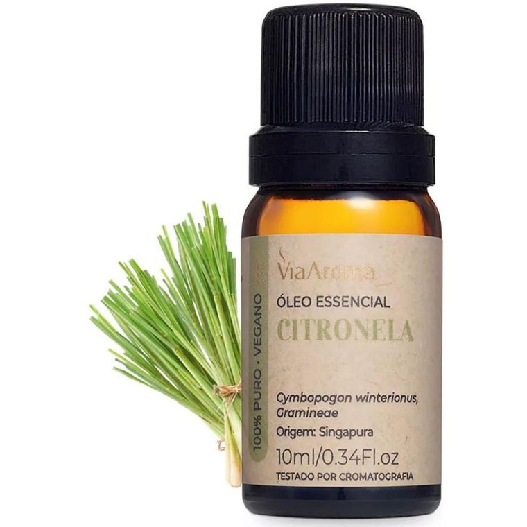 Os Óleos Essenciais Via Aroma são compostos naturais e 100% puros, sem diluição ou adição de outras substâncias e com Certificação IBD. Cada OE tem propriedades e características específicas e podem ser usados em diversas situações e momentos do dia. Muito além dos aromas, inserir os óleos essenciais na sua rotina pode trazer benefícios para o corpo e a mente. Benefícios do Óleo Essencial Citronela Aspectos emocionais Pode diminuir a irritabilidade e nervosismo; Ajuda com sentimentos e sensações ruins; Estimula a mente e a criatividade; Revigorante, auxilia com casos de esquecimento; Ameniza fadiga e cansaço. Aspectos físicos Desodorante, faz controle de odores corporais e do ambiente; Pode aliviar picadas de insetos; Repelente natural de insetos.